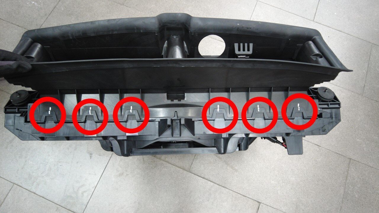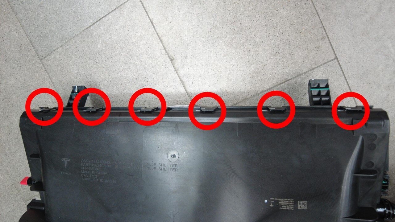 安装将主动进气格栅固定到冷却风扇模块的锁片(14 个)。
