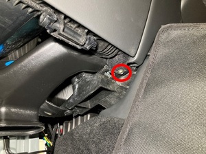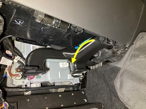 移动副驾位脚部空间风管,将其从仪表板支架和手套箱之间取出。