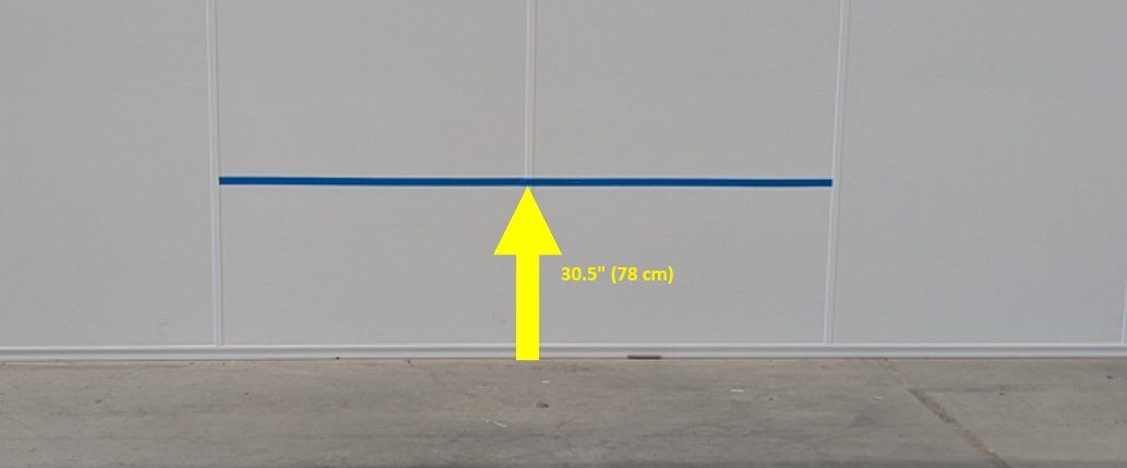 注在墙壁上距离地面 78 厘米(30.5 英寸)处粘贴胶带。