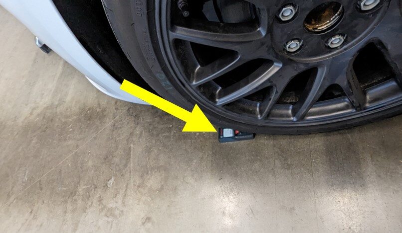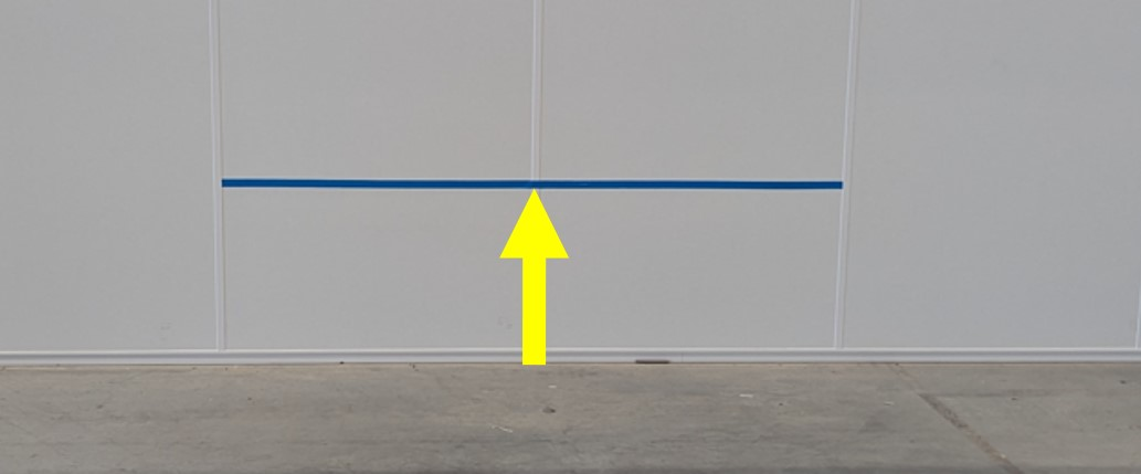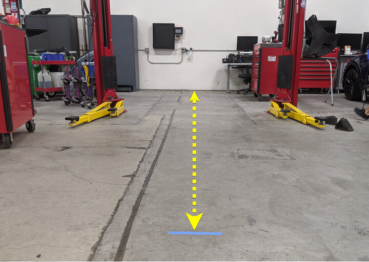 注向车辆中心点投射一束垂直于墙壁的激光,然后在墙壁上标记一条中心线。