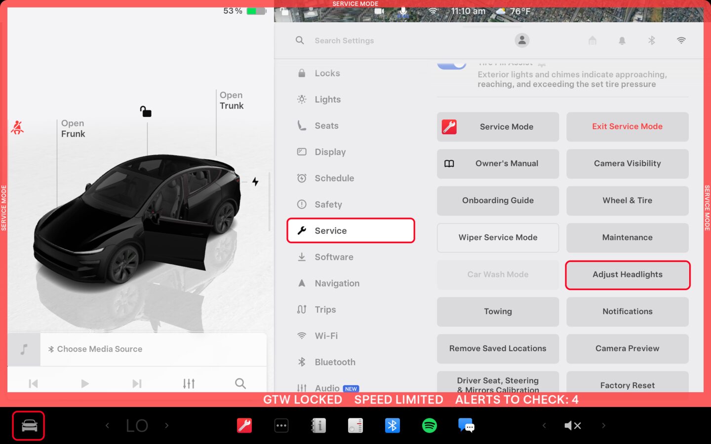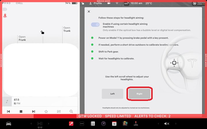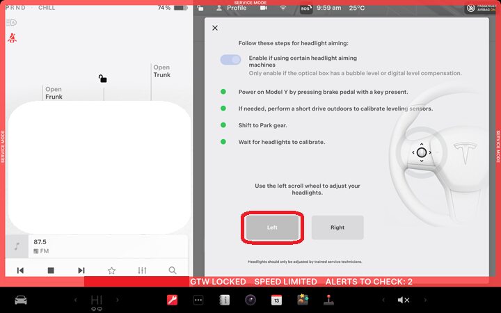 通过触摸屏进入前照灯校准模式。