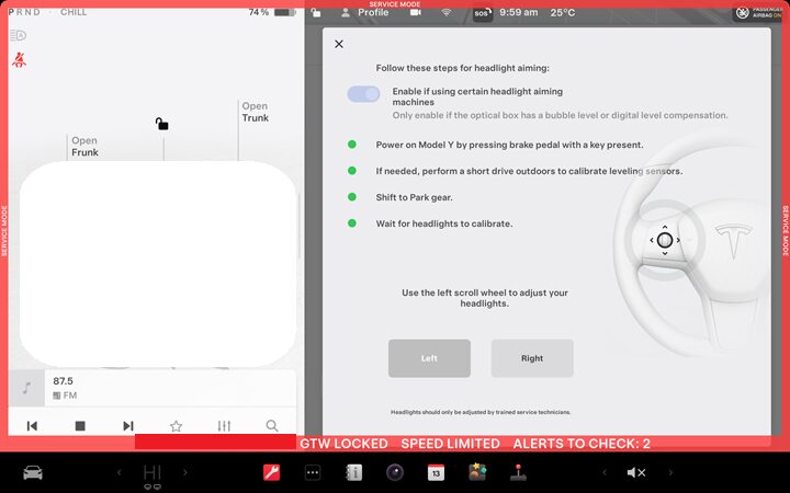 采用墙壁法调节前照灯 - 2025+ Model Y 高配版和高性能版