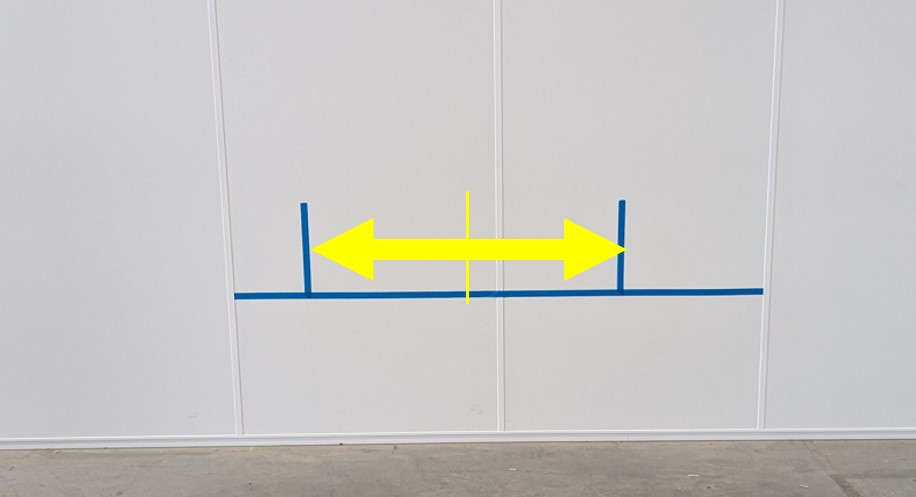 在距离墙壁 4 米(13 英尺)的地面上粘贴胶带。