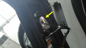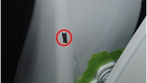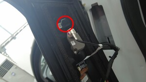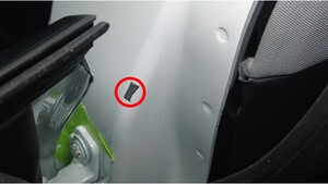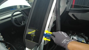 揭下 B 柱饰板下方的双面胶。