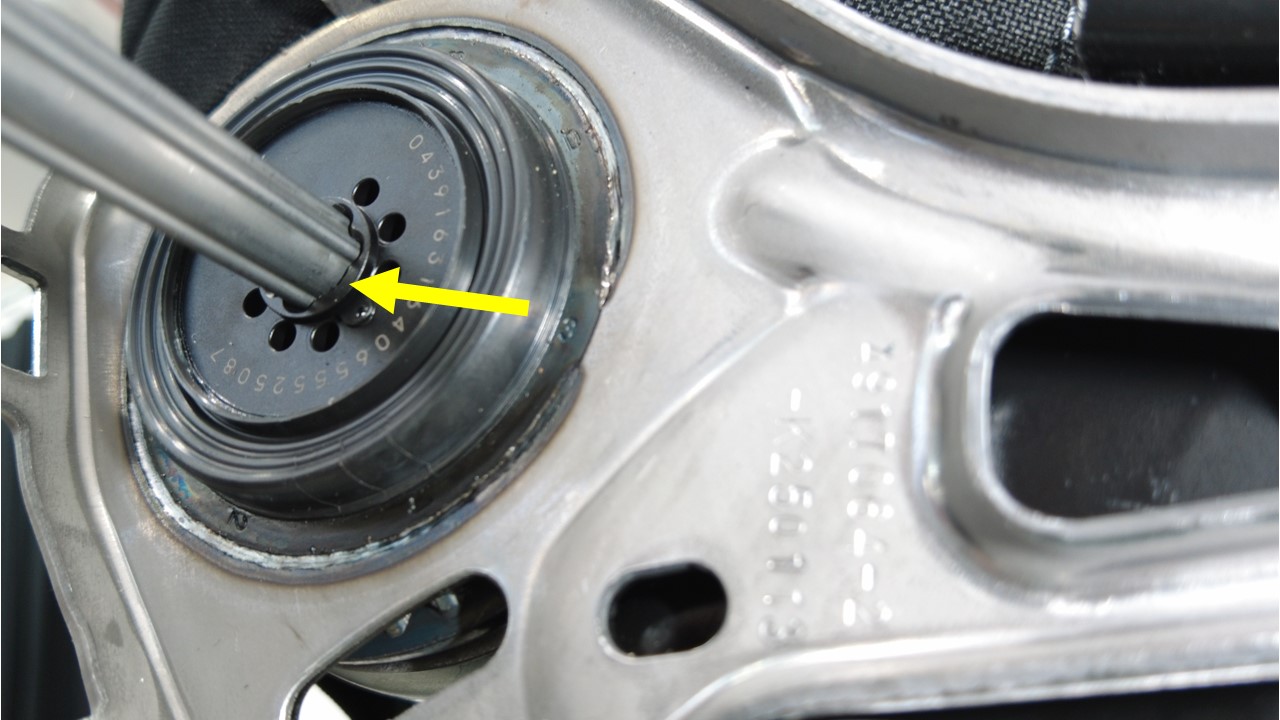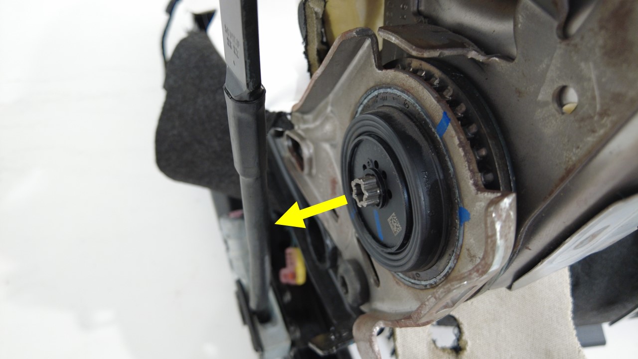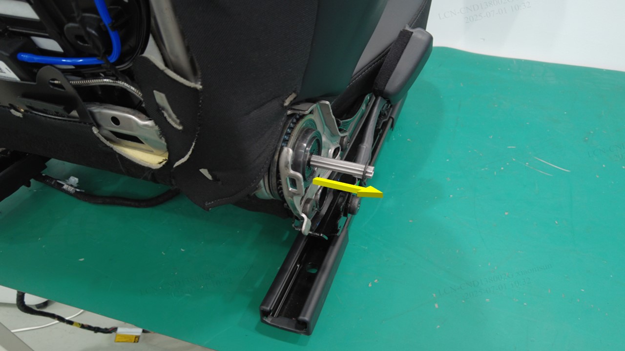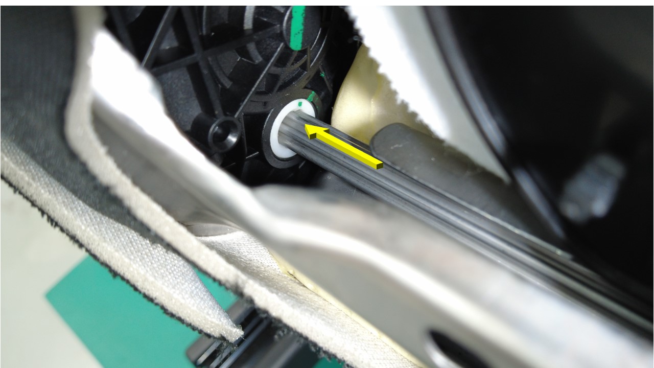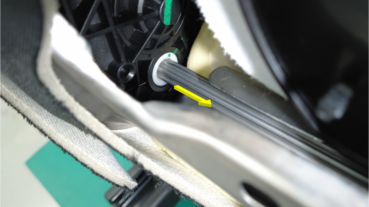 将驾驶位座椅靠背倾角调节管推过座椅框架,以便能从另一侧看到一小部分靠背倾角调节管。将靠背倾角调节管从框架内拉出并拉离。