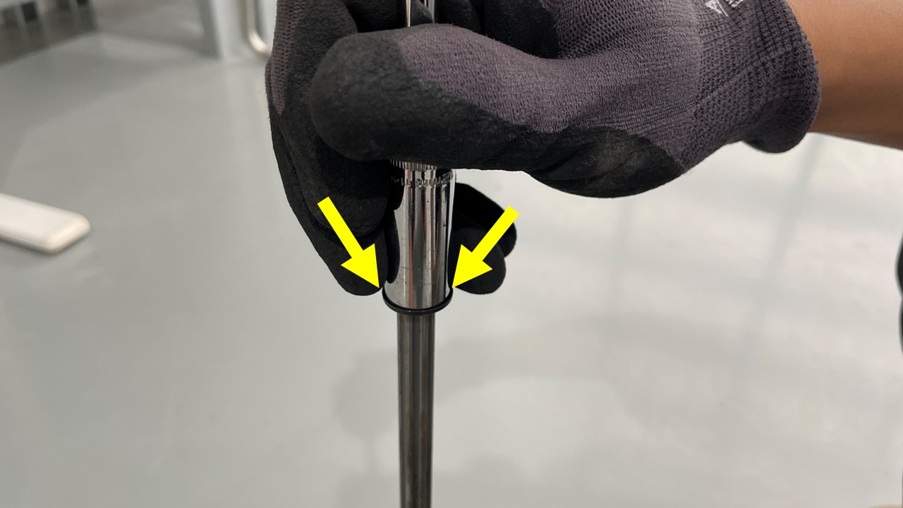 在协助下,握住调节管外侧一端,使用 12 毫米深套筒和橡胶锤将新的卡子 (1527040-00-A) 装入靠背倾角调节管内侧一端。