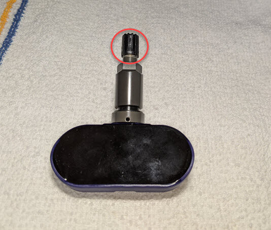 拆下新的胎压监测系统 (TPMS) 传感器上的螺母。