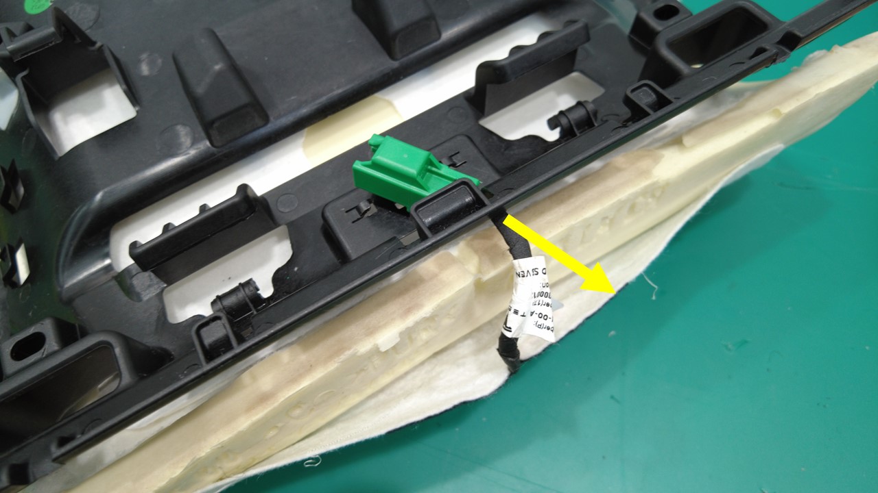 将加热器线束安装到第二排左侧座椅靠背外壳上。