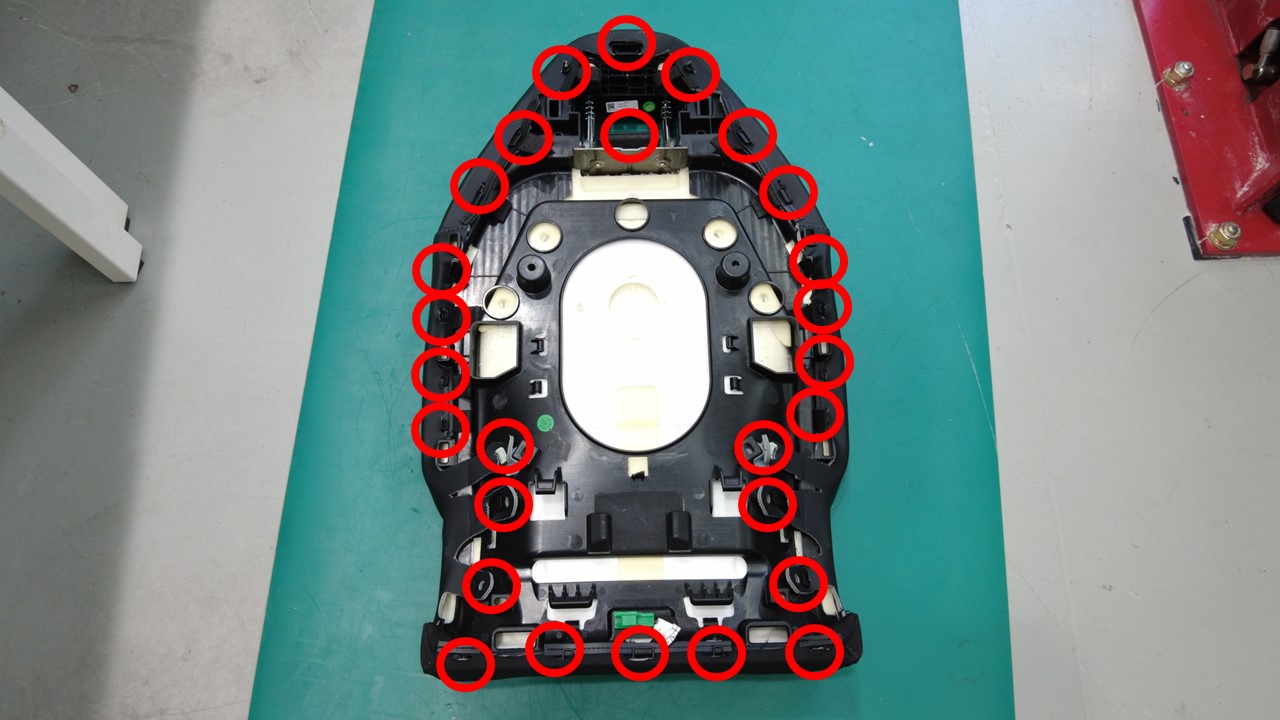 紧固将座椅靠背泡沫总成固定到第二排左侧座椅靠背外壳的卡子(27 个)和定位夹(2 个)。