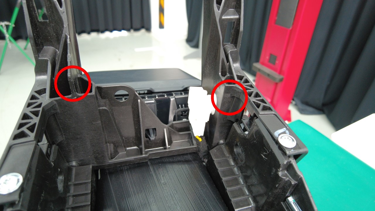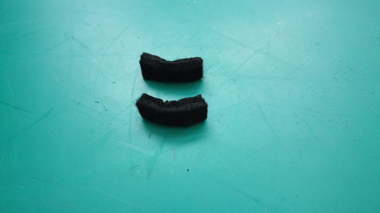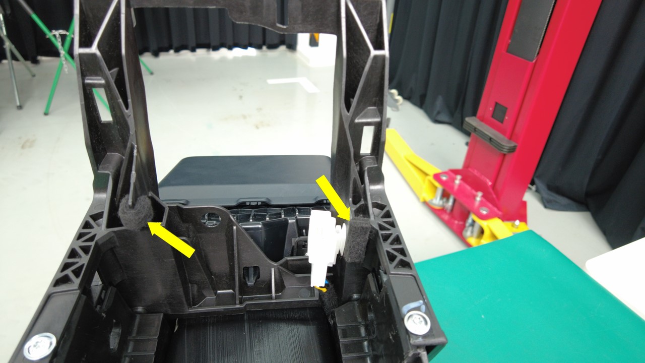 将新的毛毡(2 个)安装到扬声器下部支撑支架上。