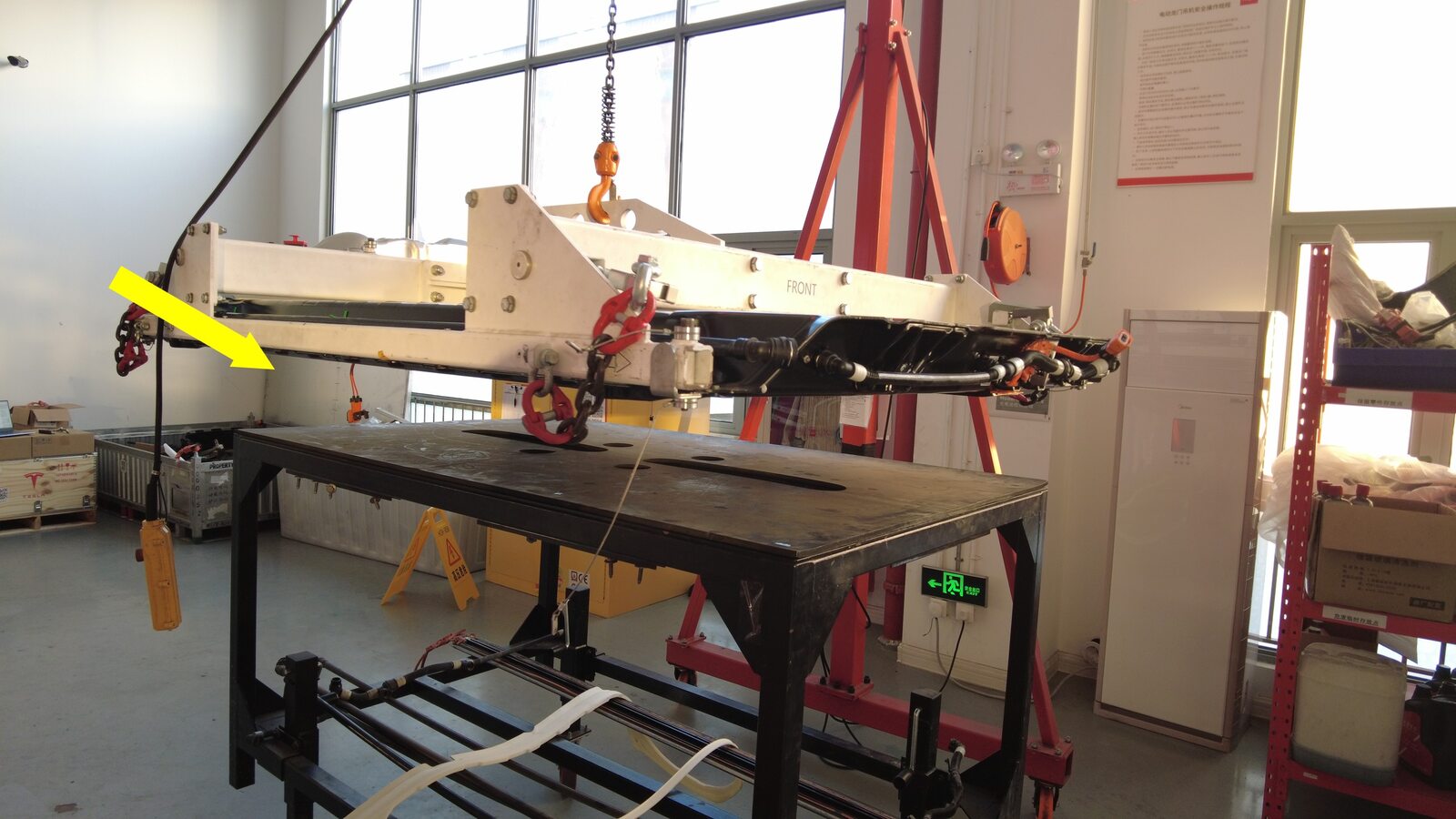 Position the gantry over the new HV battery crate and secure the H-frame to the HV battery.