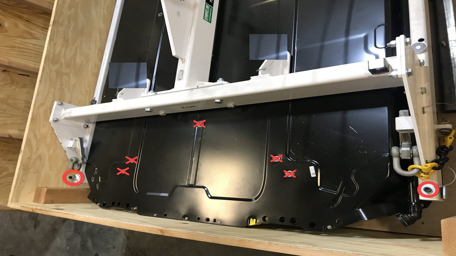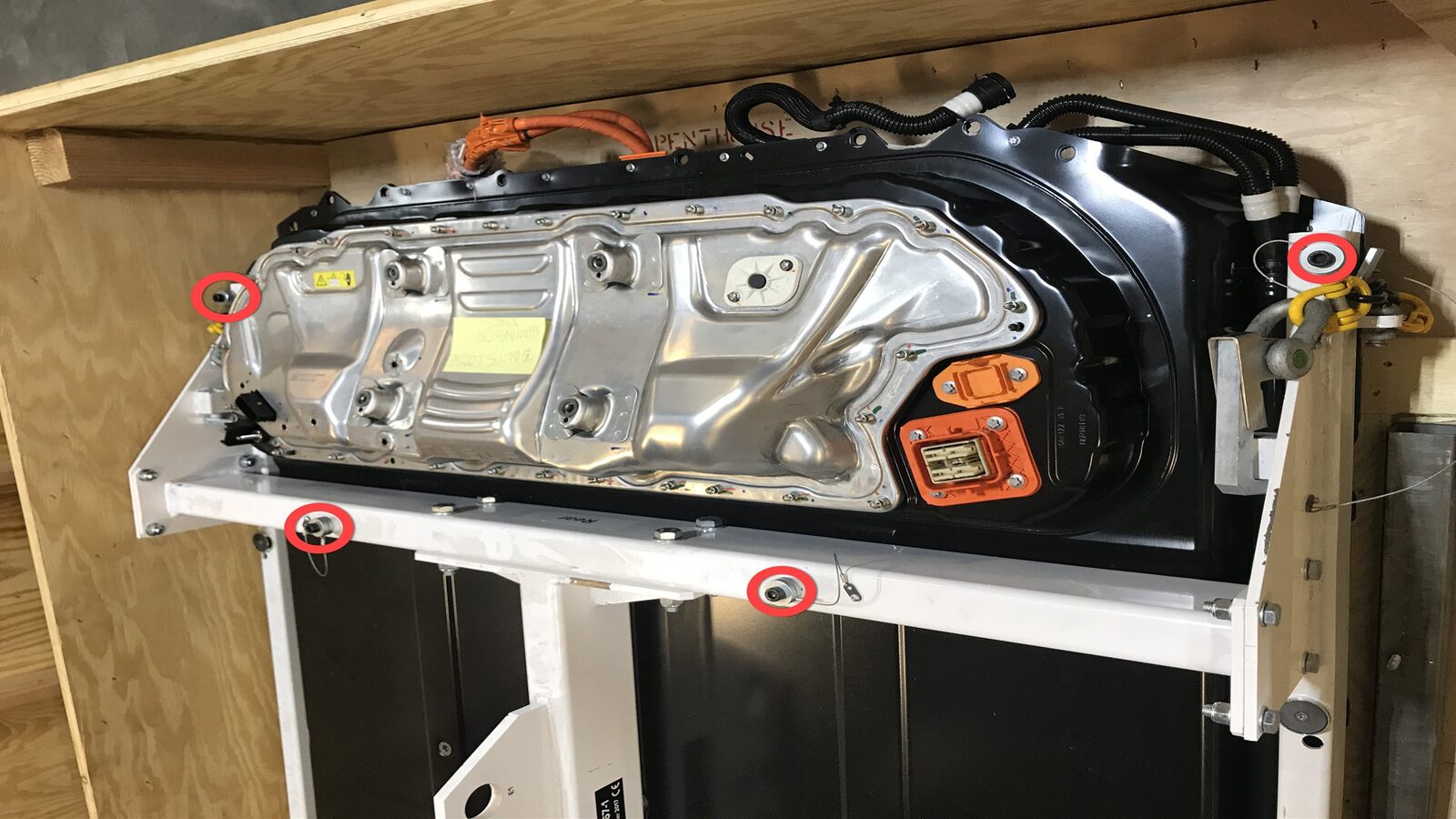 Install the nuts (x4) that attach the HV battery to the crate hand tight.