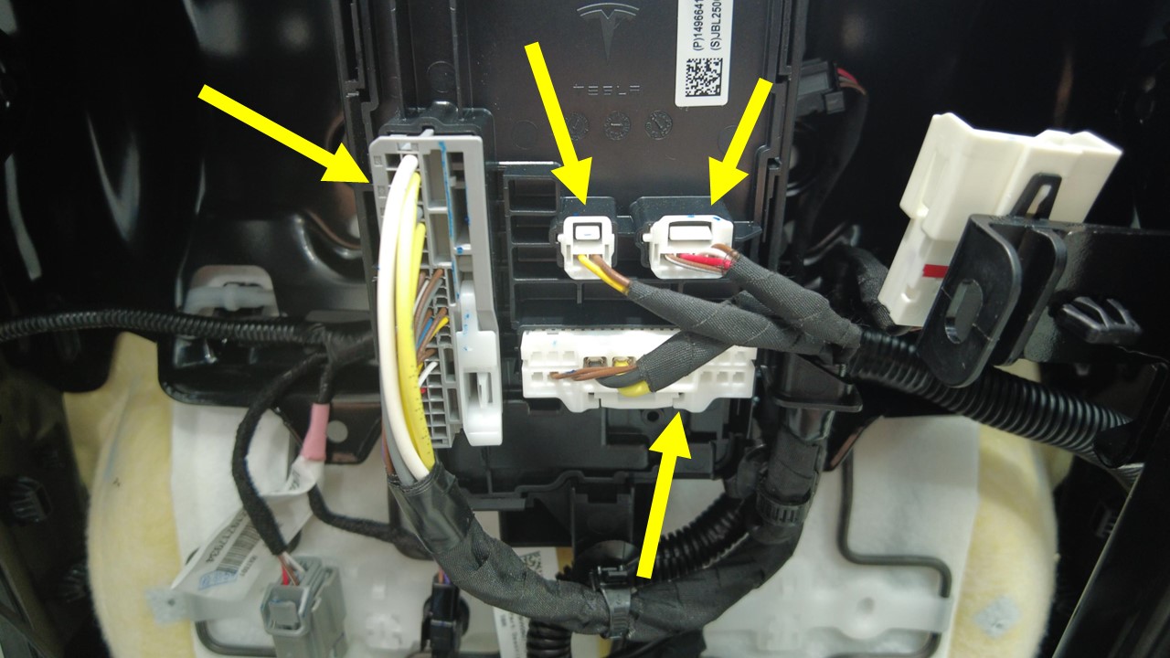 断开第二排左侧座椅模块连接器(4 个)并松开卡子(2 个)。