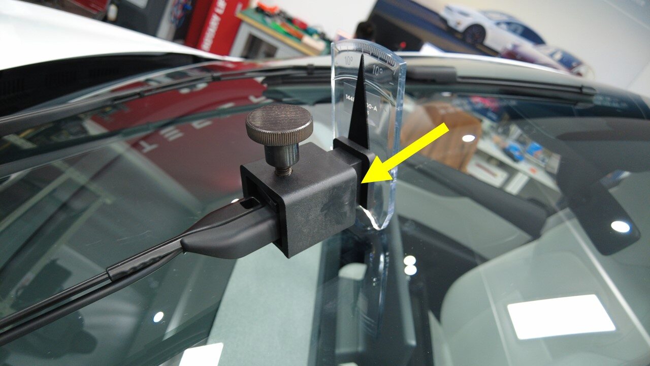 检查确认雨刮器调节工具上的测量板可以自由转动。