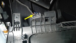 将电气连接器连接到驾驶位脚部空间隔音板上。