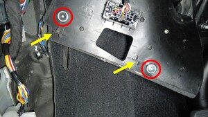 拆下左侧膝部气囊螺栓帽。