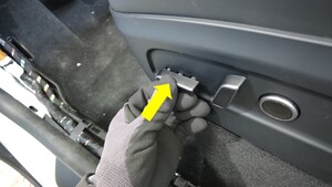 使用饰板工具小心地松开将驾驶位座垫开关按钮固定到座椅总成的夹子,然后从总成上拆下按钮。