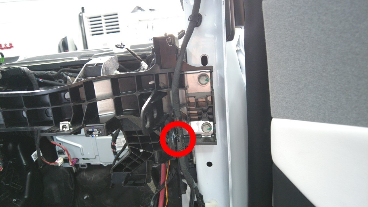 将顶篷线束夹安装到右侧 A 柱下部。