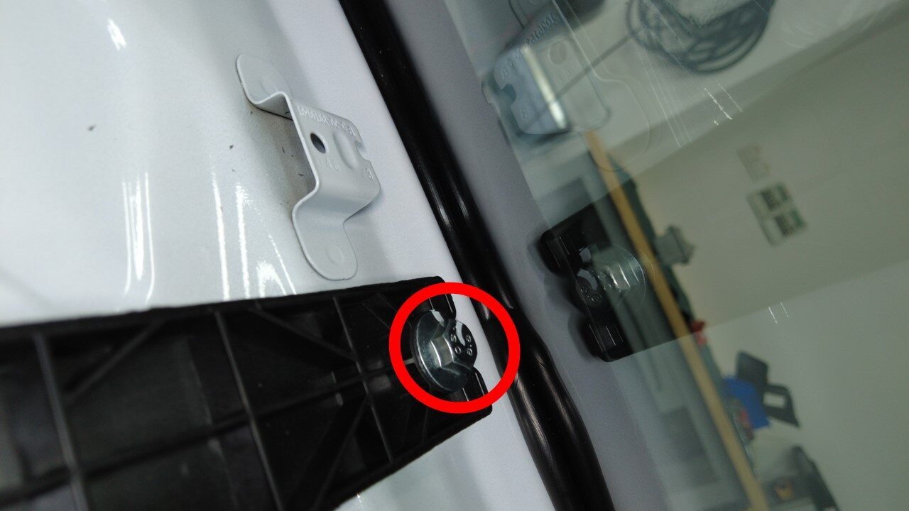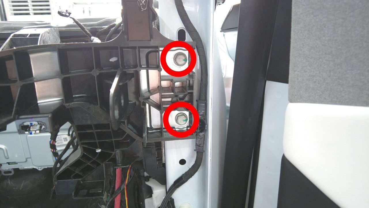 安装将左右横梁固定到 A 柱的螺栓(4 个)。