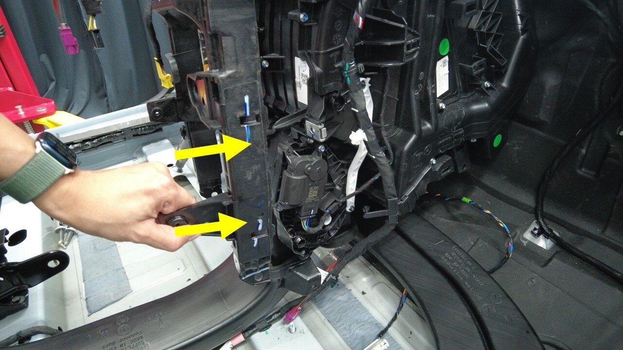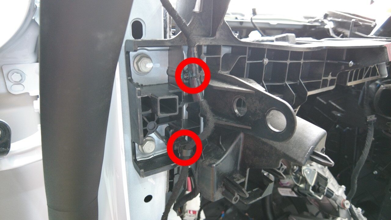 拆下左侧 A 柱下部的顶篷线束夹(2 个)。