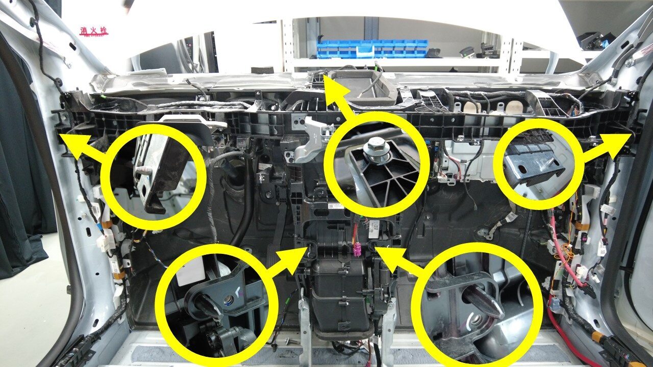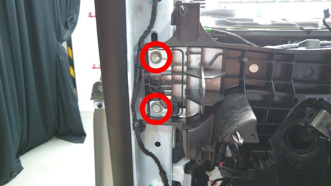 拆下将左右横梁固定到 A 柱的螺栓(4 个)。