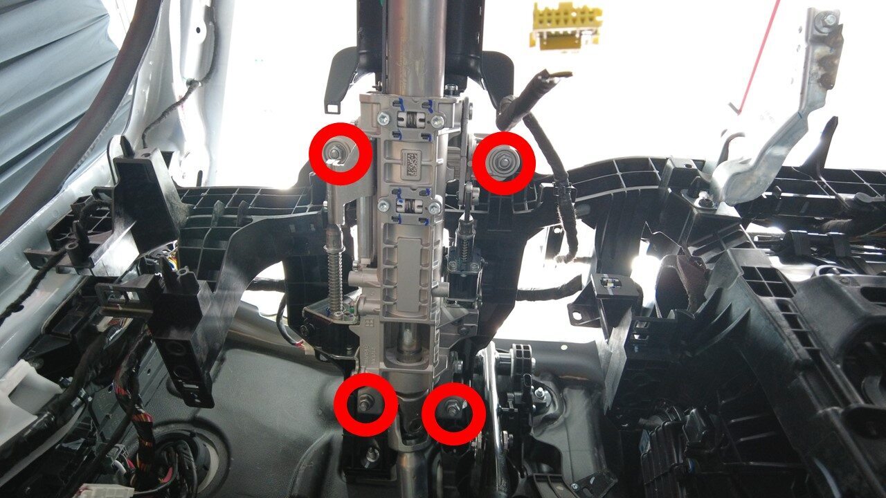 拆下将转向柱固定到横梁的螺母(4 个)。