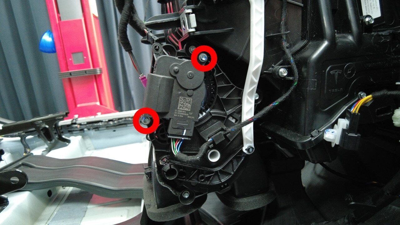 安装将横梁固定到 HVAC 总成的螺栓。