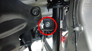 检查将左前支柱固定到左前下方横向连杆的螺栓和螺母,确认其扭矩,然后用油性记号笔标记螺母。