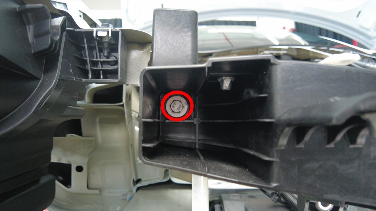 紧固将前端模块支架右侧总成固定到前端模块的螺栓。