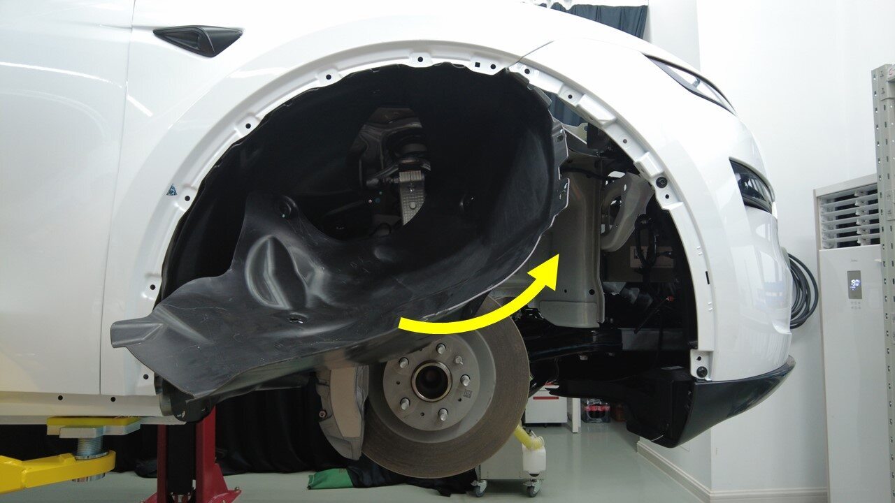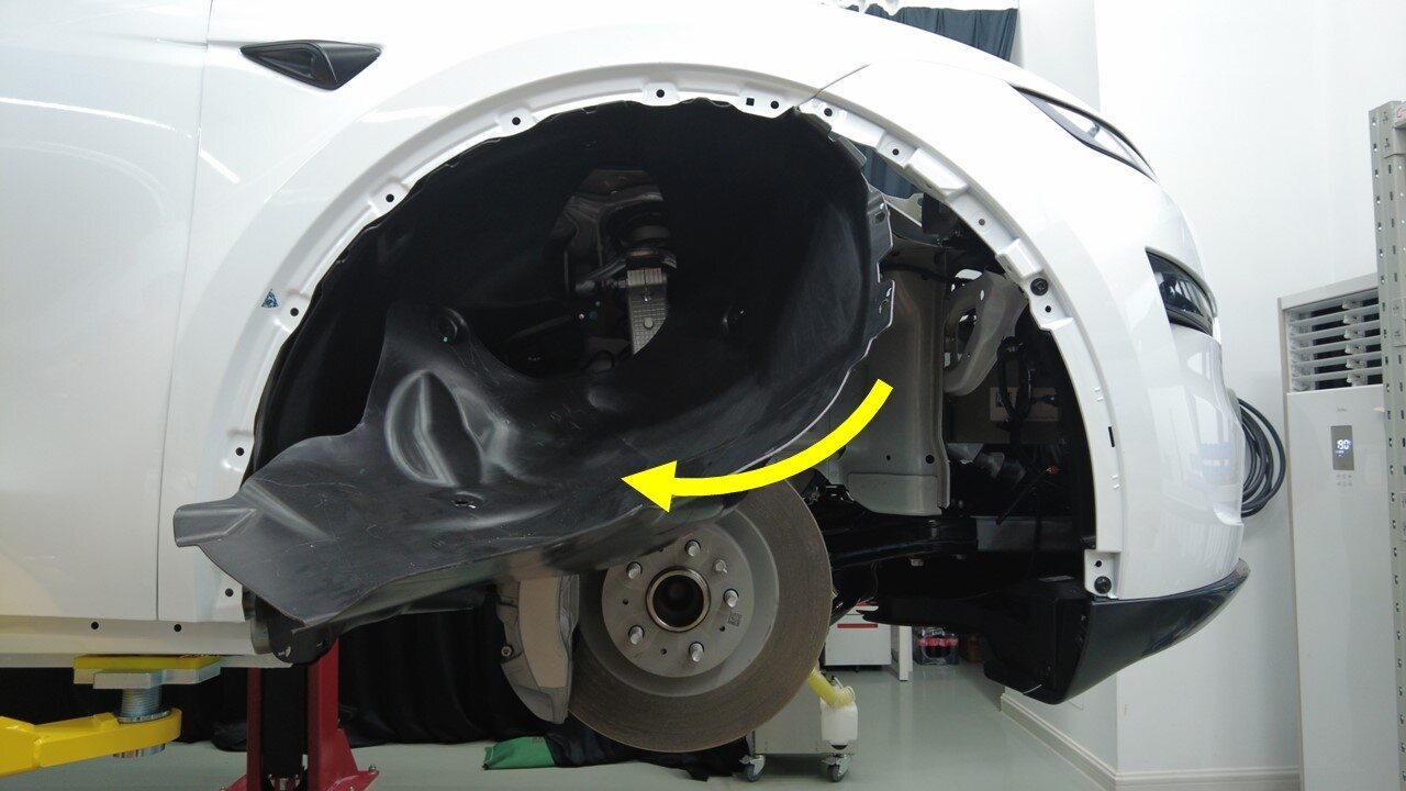 松开 4 个右前轮毂内衬卡子。