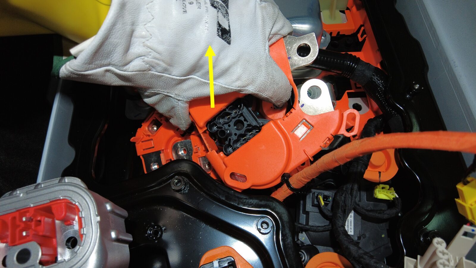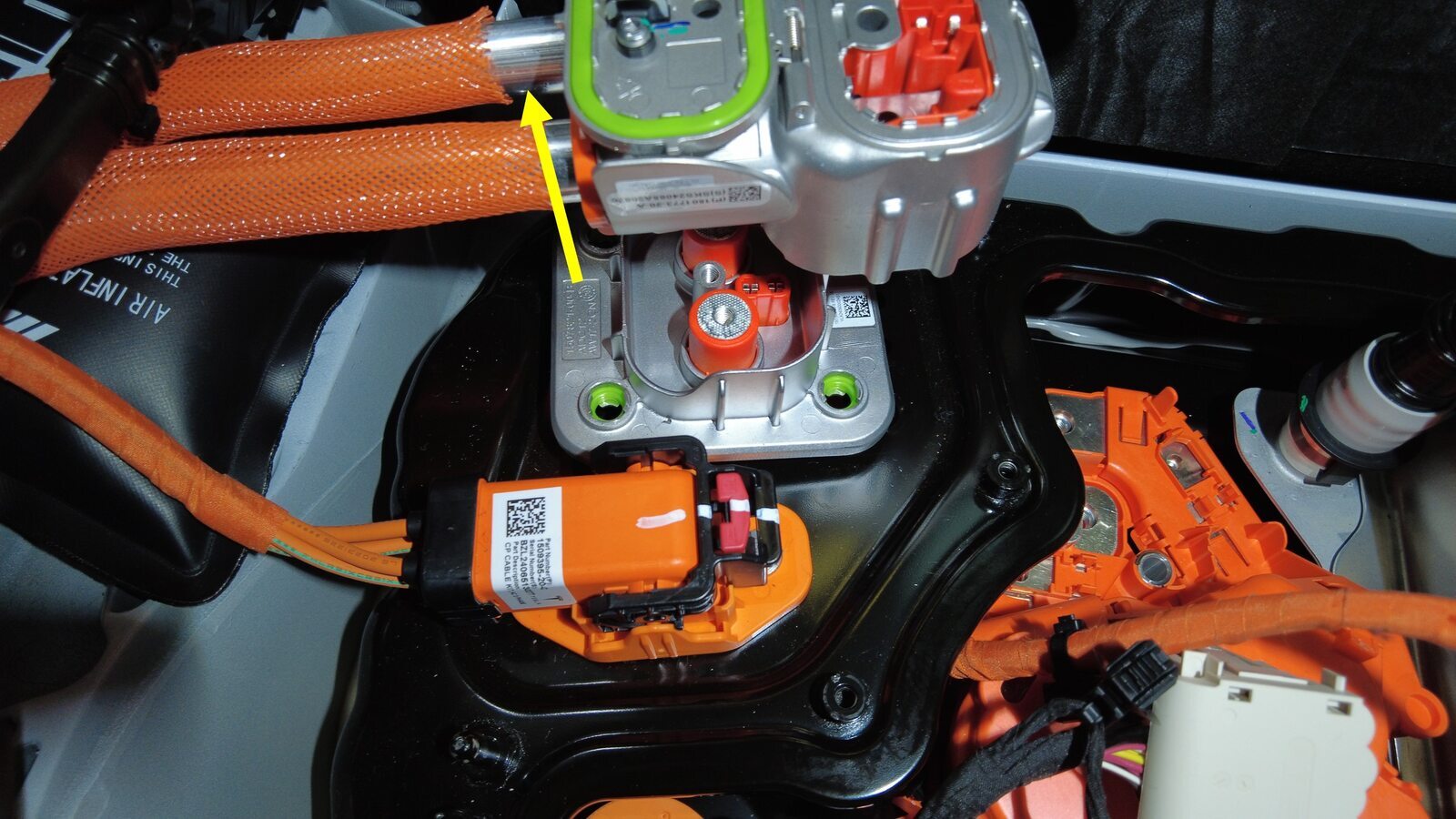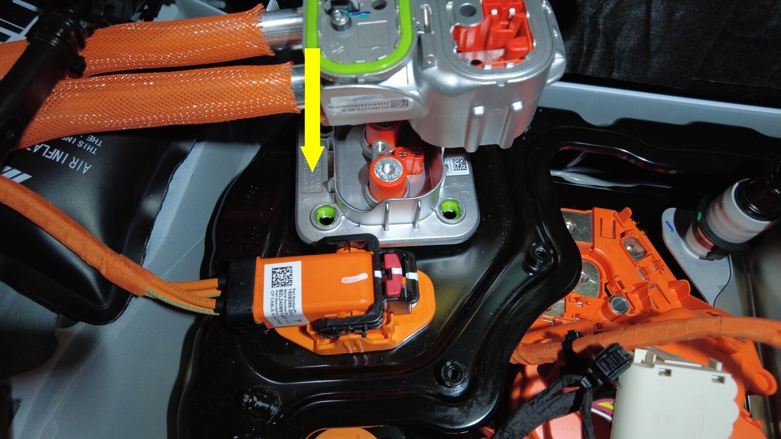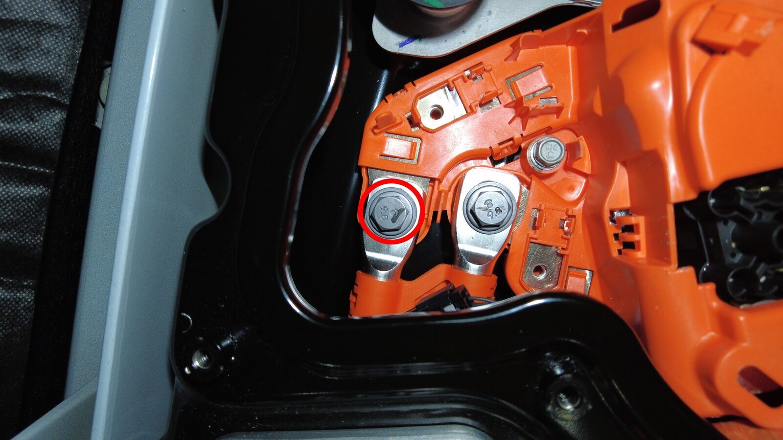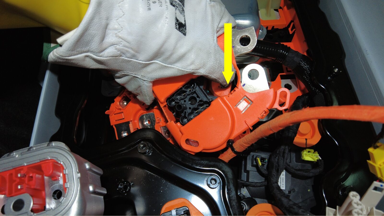 拆下并弃用将直流输入母排总成固定到高压电池仓的螺栓。