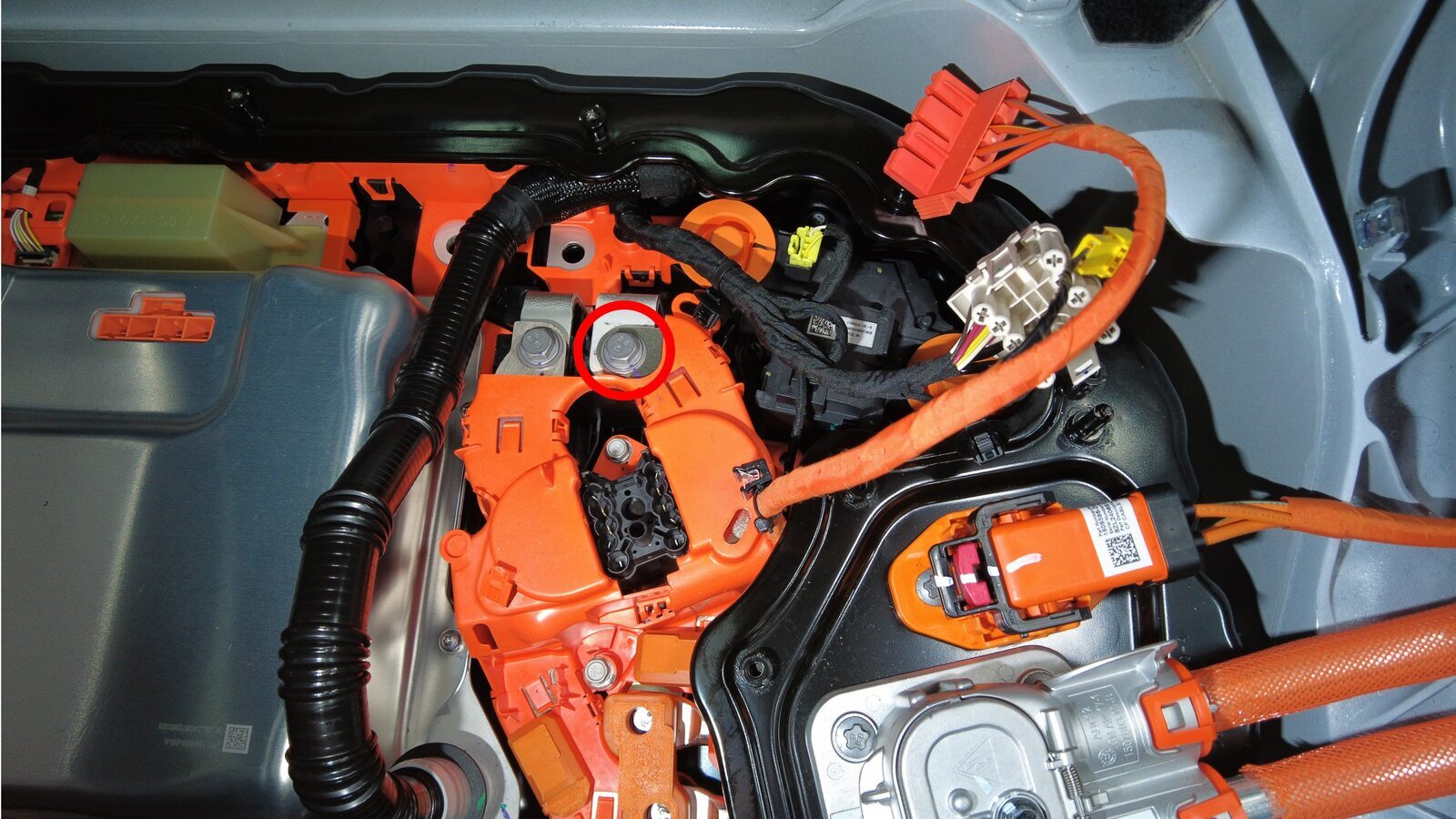 安装将充电接口母排套件固定到高压接头的螺栓。