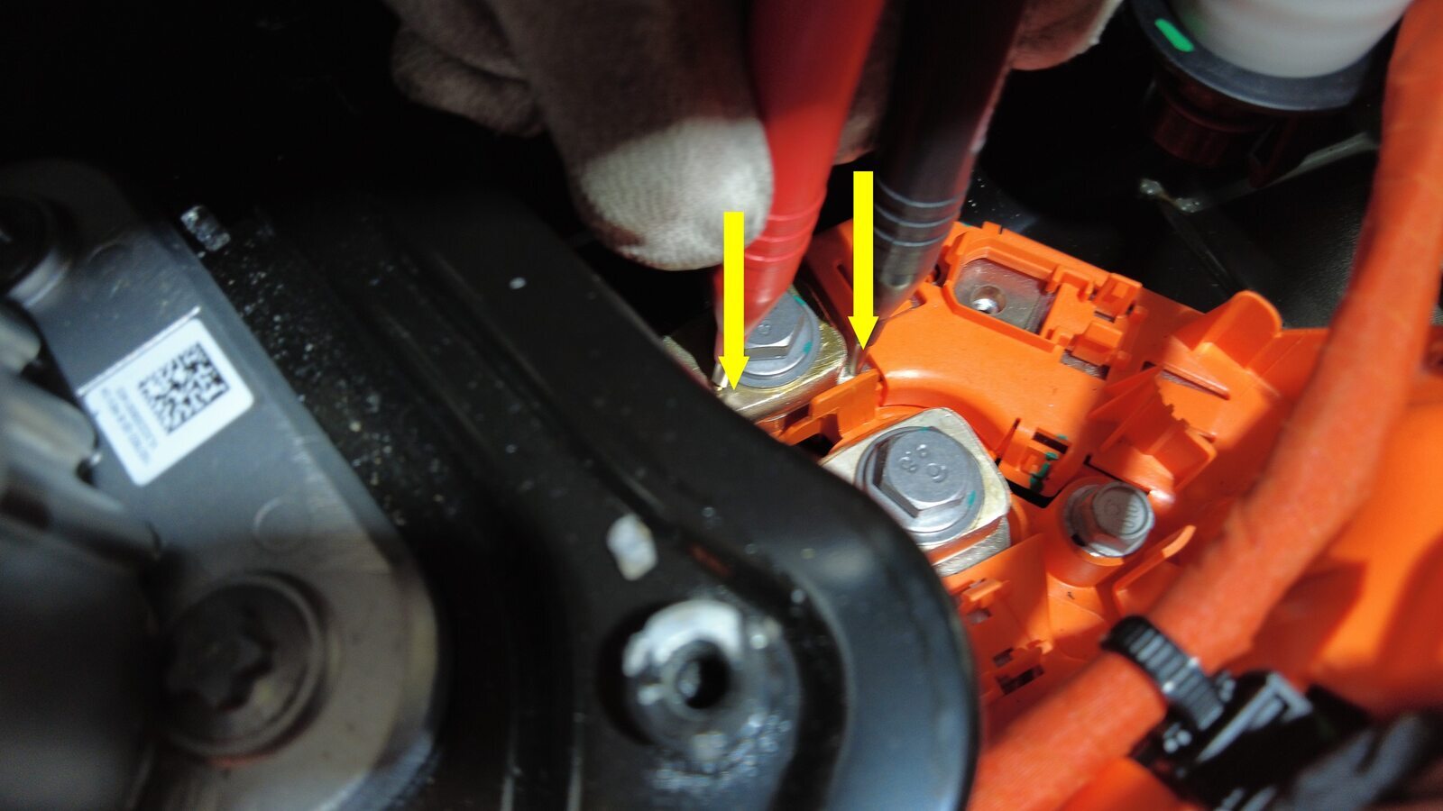 在高压母排引线至螺栓头的每个高压接头处执行 Hioki 电阻测试。