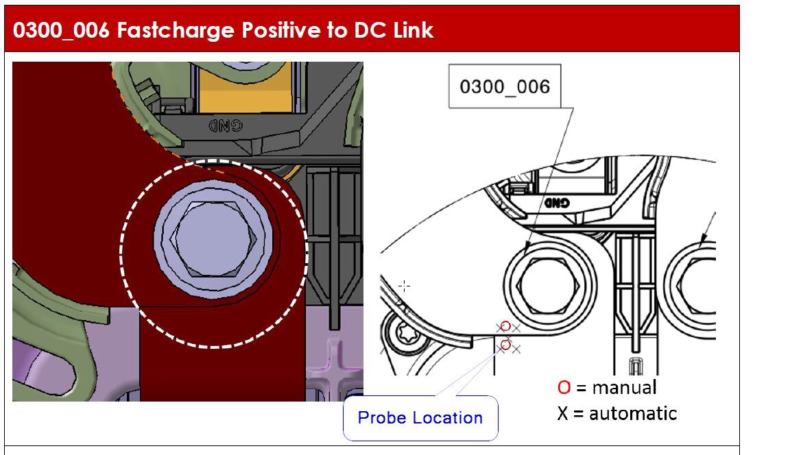 在快充母排正极直流链路侧高压接头处执行 Hioki 阻抗测试。