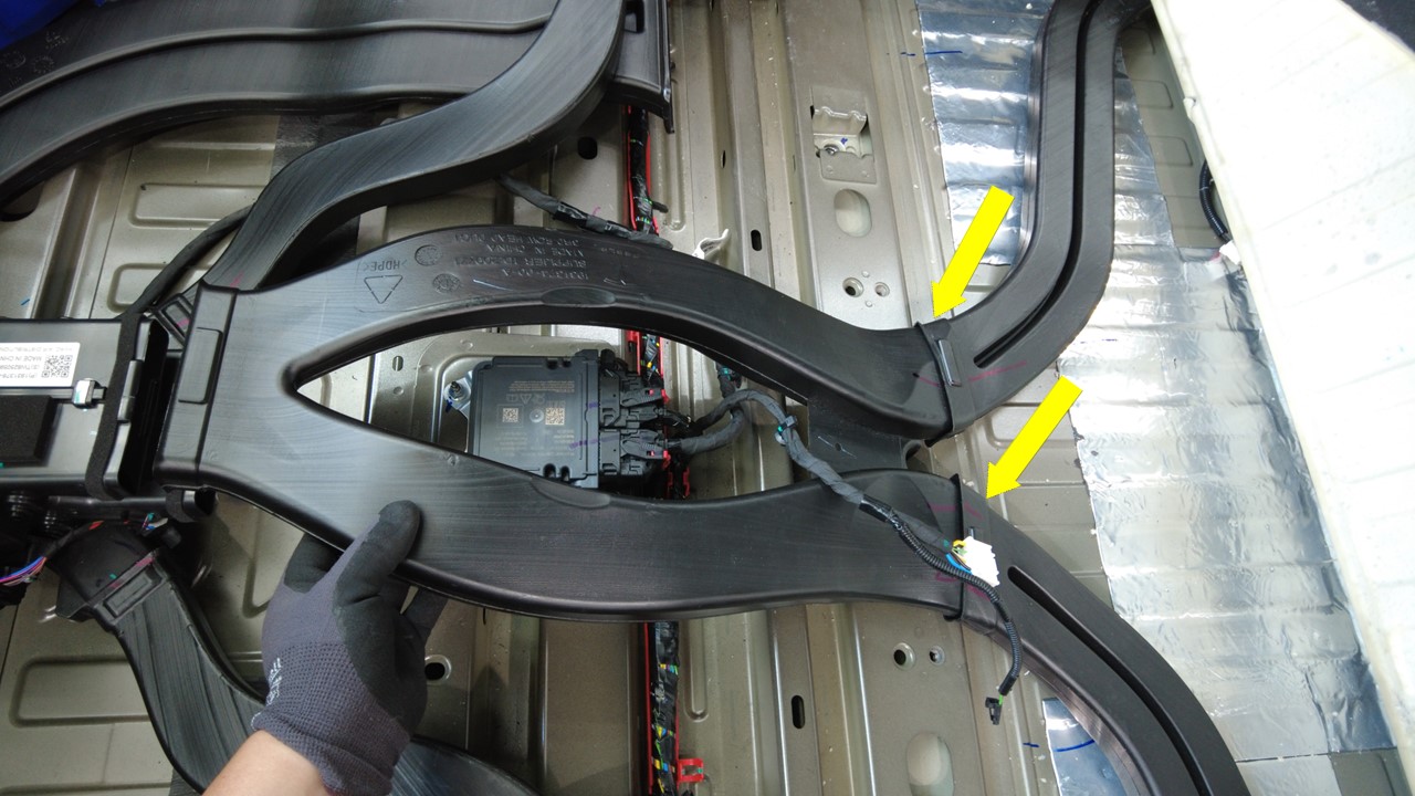 - 安装第一排座椅平台。请参阅 座椅下部支撑框架 - 第一排座椅(Model Y L) ((拆卸和更换))。