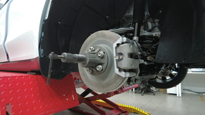 - 使用轮毂轴承拉拔器将半轴从轮毂轴承花键上松开。