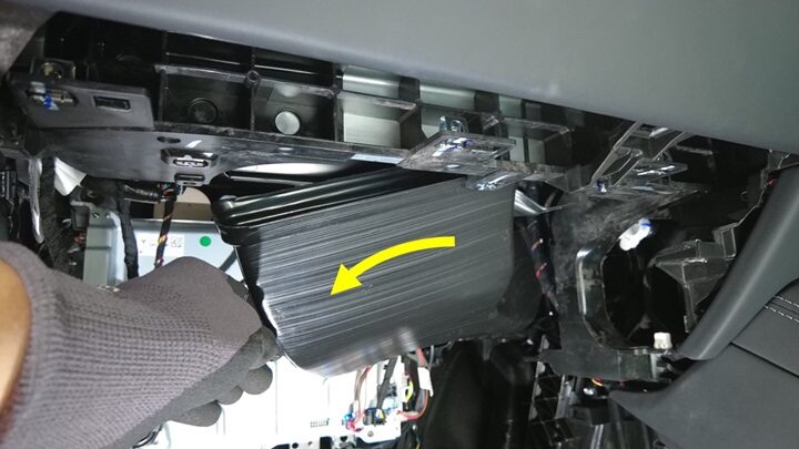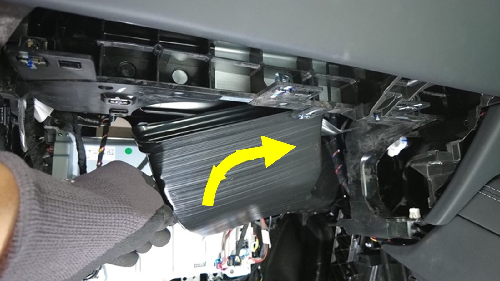 - 拆卸手套箱。请参阅 手套箱(右驾驶) ((拆卸和更换))。