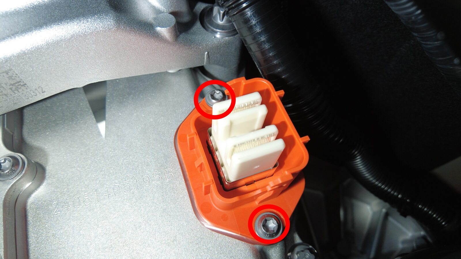 安装将高压接头固定到后驱动单元的螺栓(2 个)。