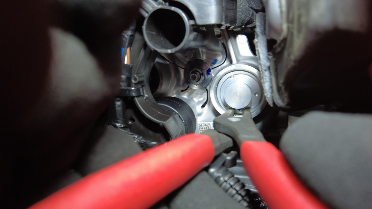注使用鹰嘴钳向外拉动卡环,将其拆下。警告整个过程都要佩戴面罩,以防止异物在压力下飞出。