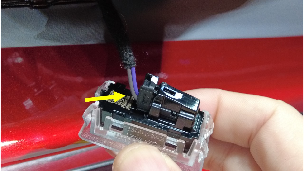 安装将路面照明灯固定到左前车门面板的卡子(4 个)和连接器。