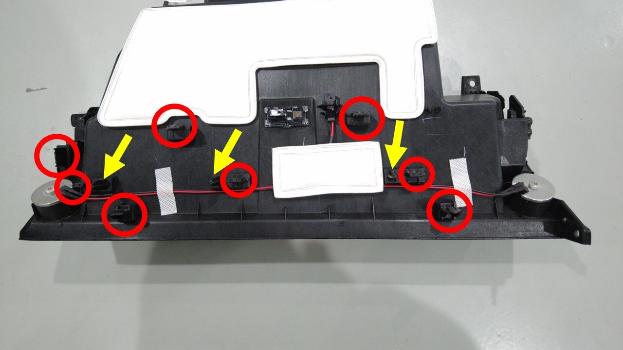 将仪表板线束安装到手套箱上。
