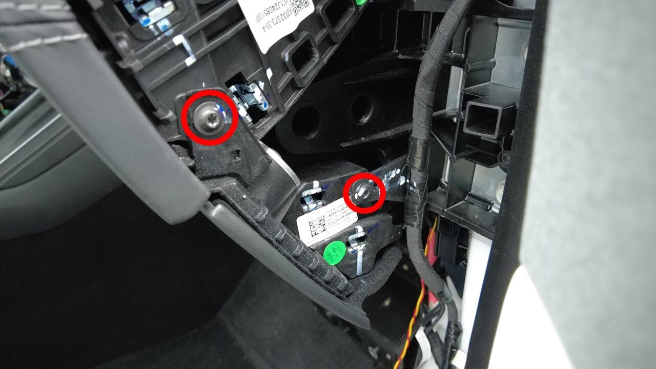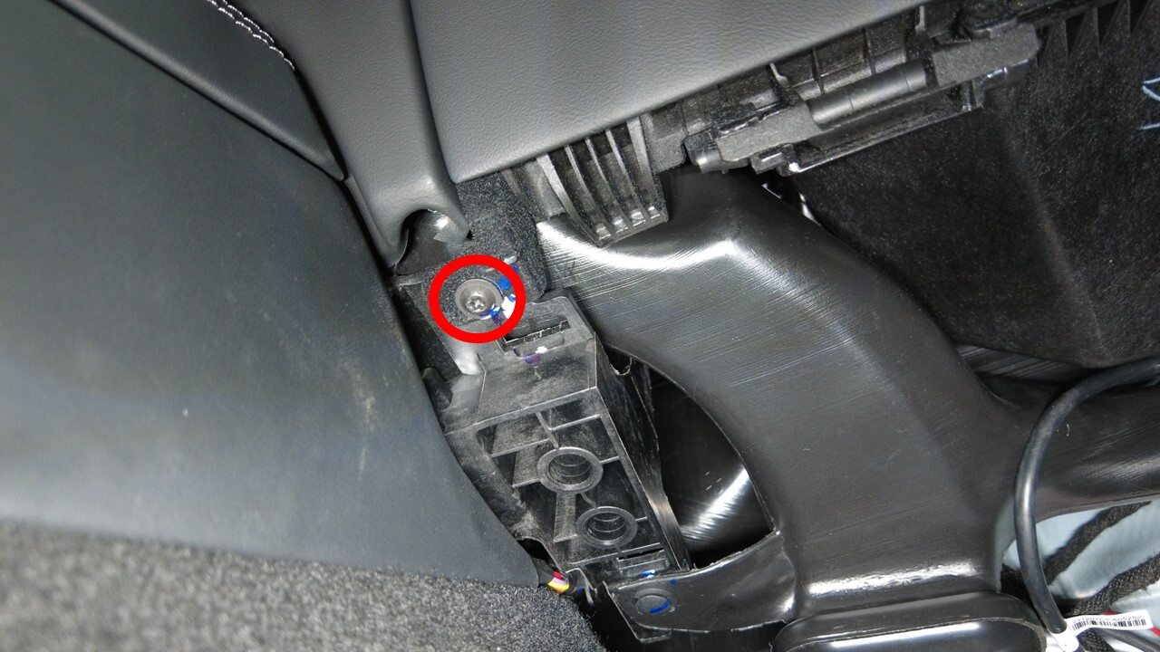 拆下将手套箱固定到仪表板支架的螺钉(4 个)。