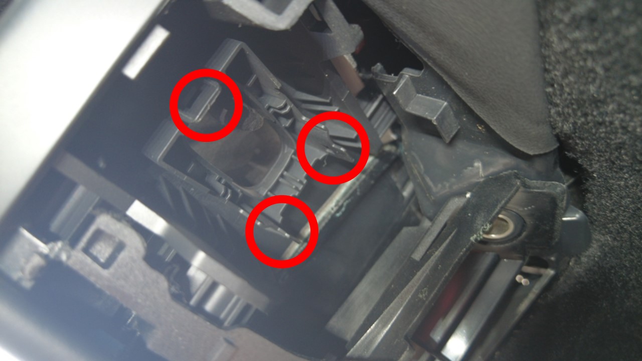 使用直型尖凿松开将左后车窗开关固定到车门面板的锁片(3 个),然后将开关从底部拉出。