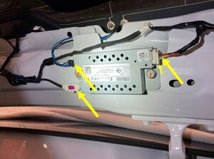 拆下将调谐器固定到车身的螺栓(2 个),然后将调谐器从车辆上拆下。